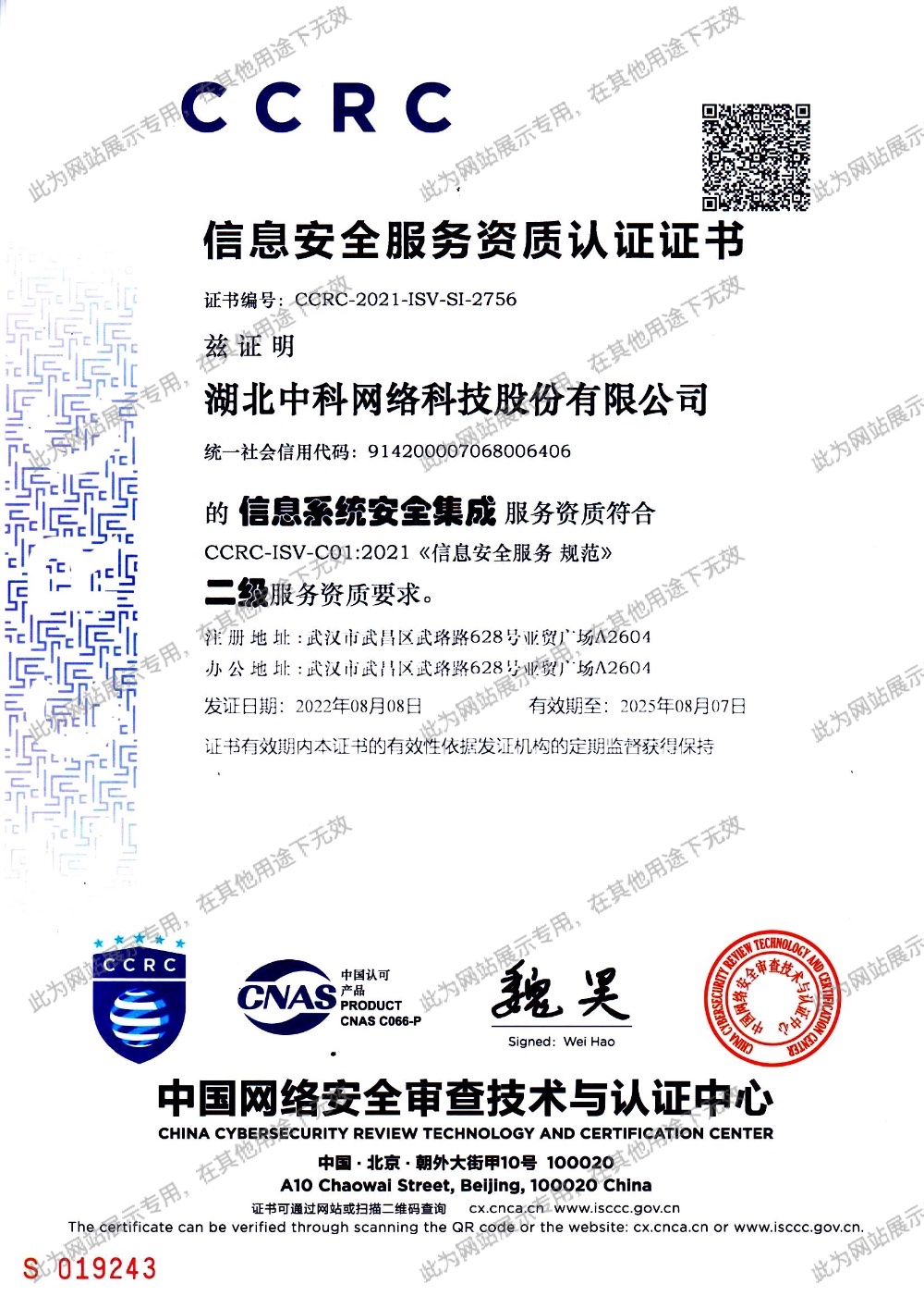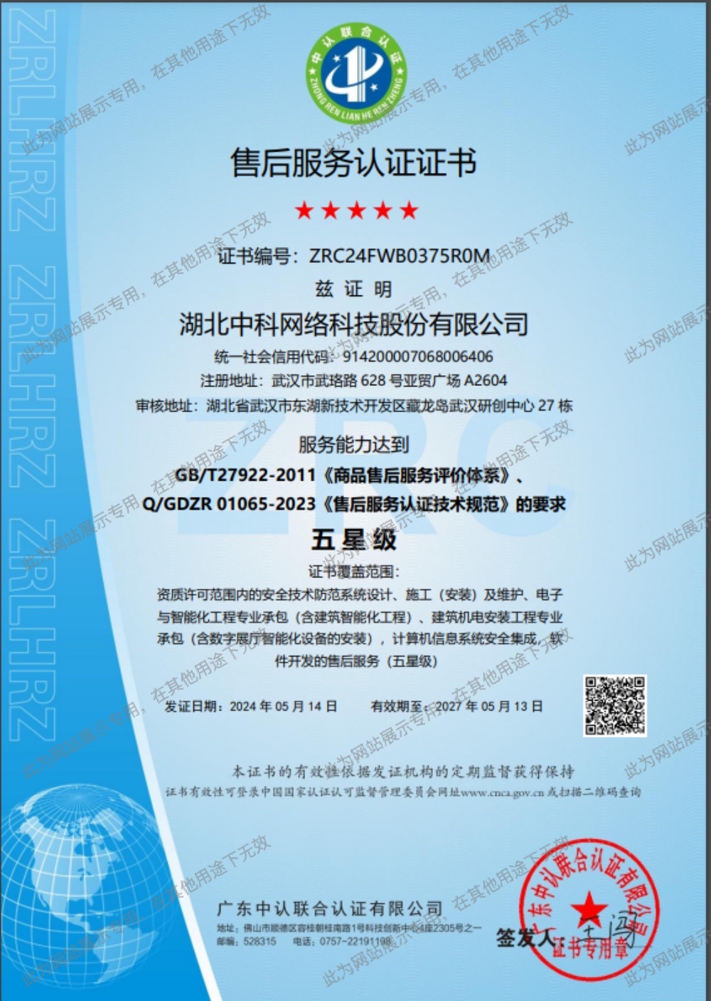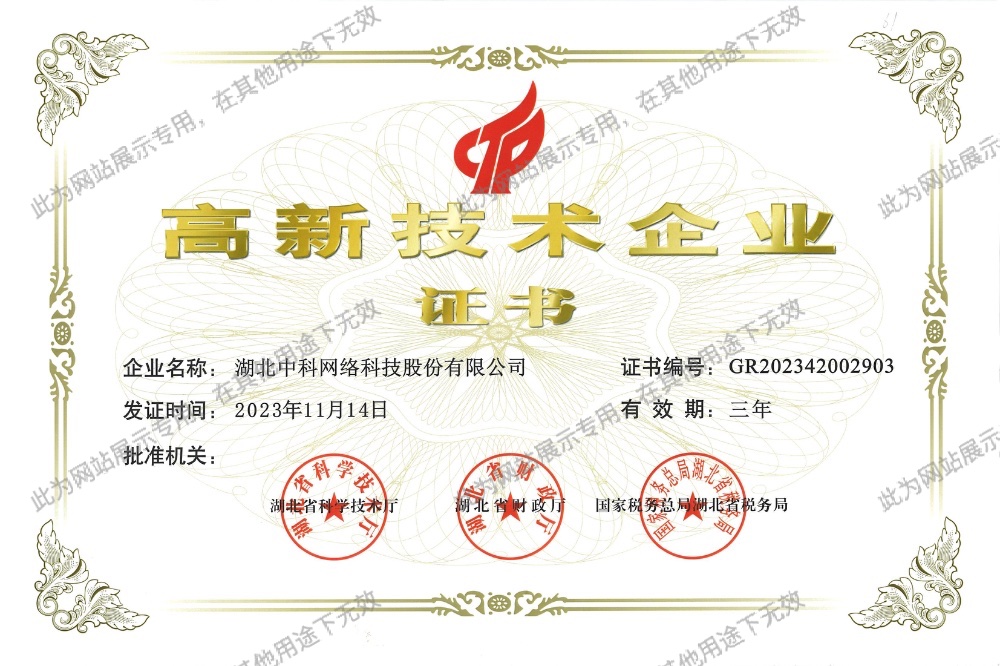 湖(hu)北中科(ke)网络(luo)科(ke)技股份有限公司(si)成立于1998年(nian)5月,注(zhu)册地为武(wu)汉市(shi)武(wu)昌区(qu),总(zong)部位(wei)于中国(guo)光(guang)谷。是(shi)智能化、信息化行业的(de)领军企(qi)业,国(guo)家认定的(de)高新(xin)技术企(qi)业、湖(hu)北省(sheng)专(zhuan)精特新(xin)企(qi)业。
